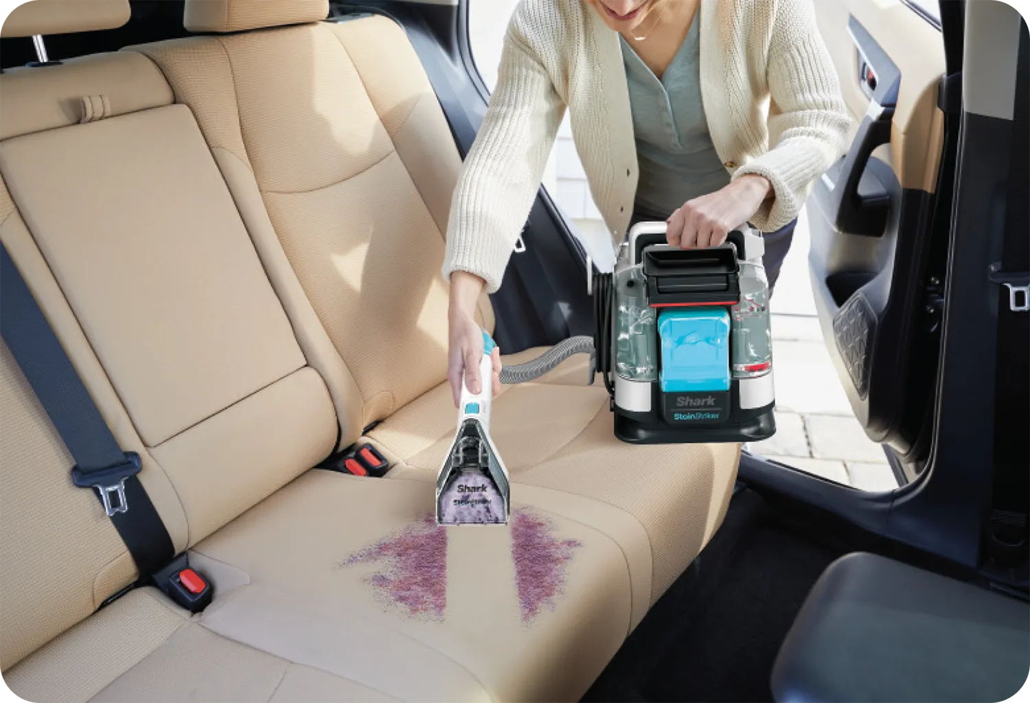 Shark’s?StainStriker Oxy Multiplier formula?lifts and extracts stubborn stains and odours, mixing together with Shark’s?CarpetXpert Deep Clean Pro Formula?and activating as you clean, targeting and removing even the toughest stains.